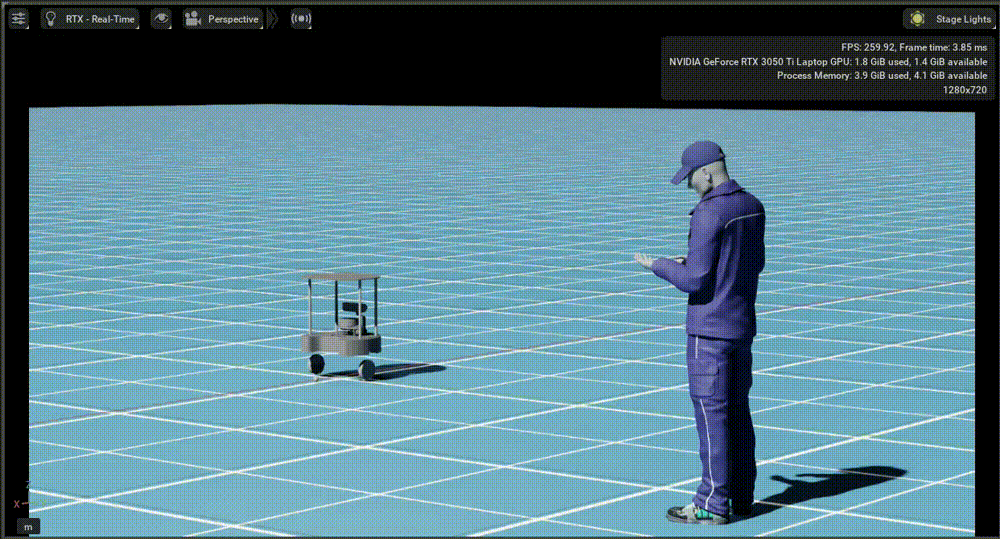 Now, you can click play in Isaac Sim, and you should see the following results!